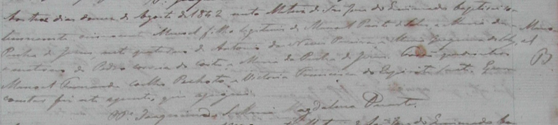 Padrinhos: Manoel Fernandes Peixoto e Victoria Francisca do Espirito Santo