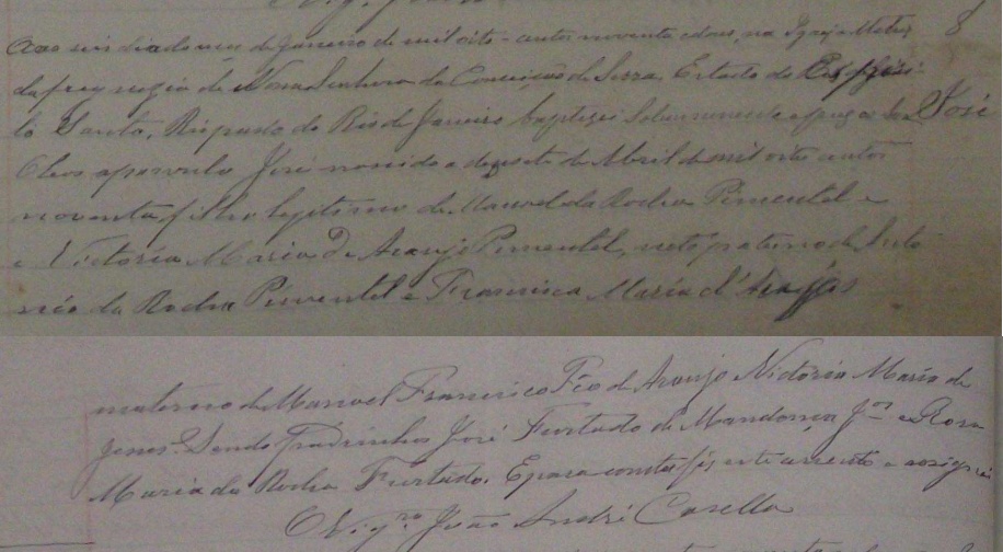 - Francisco e Francisca (gêmeos), nascidos no dia 07/02/1895, batizados no dia 26/12/1895, na Igreja matriz da Freguezia de Nossa Senhora da Conceição da Serra-ES