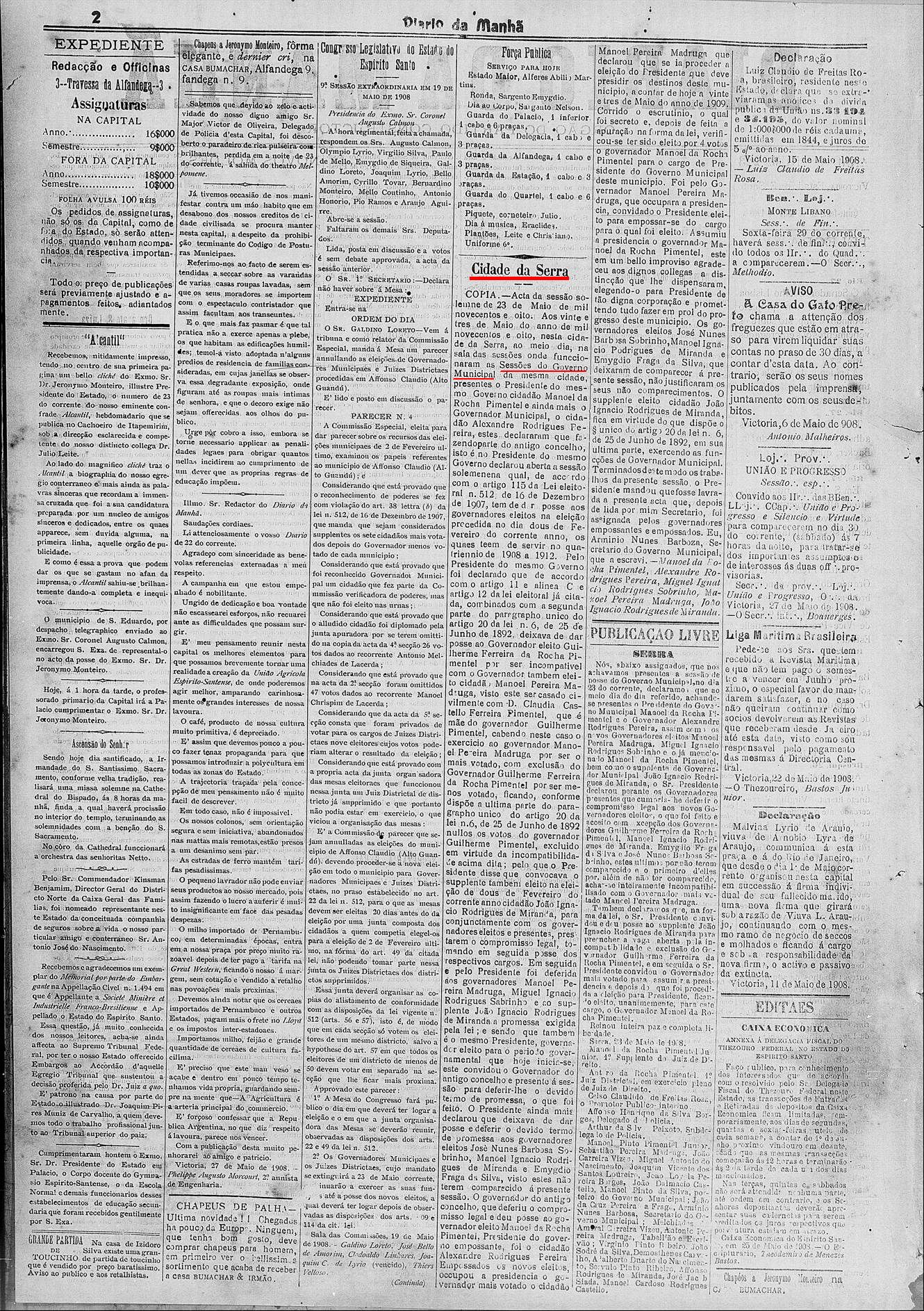 1908 - Governadores da Serra-ES, Presidente Manoel da Rocha Pimentel
