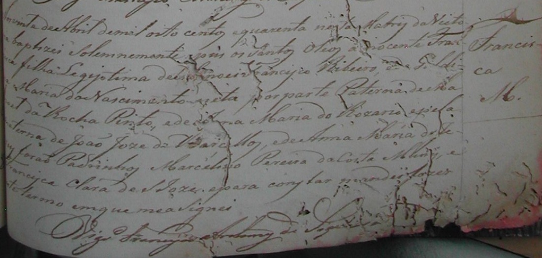 - Francisca, batizada no dia 20/04/1840, na Matriz de Vitoria-ES