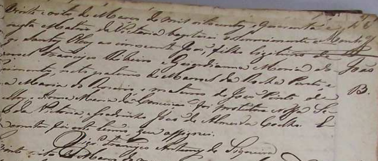 - Manoel Francisco Ribeiro c. c. Giardiana Maria do Nascimento, filha de João Jose de Barcellos e Anna Maria de Jesus
