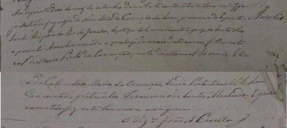 - Amelia (filha natural), nascida no dia 14/05/1882, batizada no dia 17/09/1882, na Igreja Matriz da Freguezia de Nossa Senhora da Conceição da Serra-ES