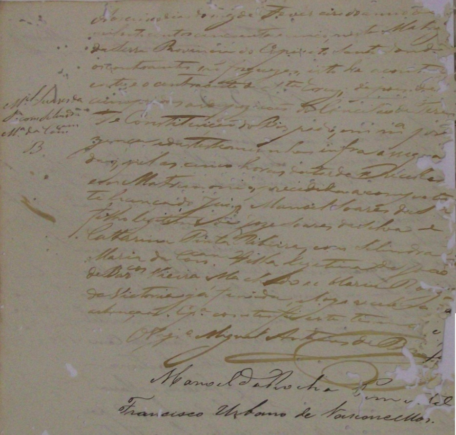 Testemunhas: Manoel da Rocha Pimentel e Francisco Urbano de Vasconcelos