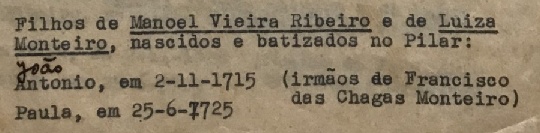 Pais: Manoel Vieira Ribeiro e Maria Barboza