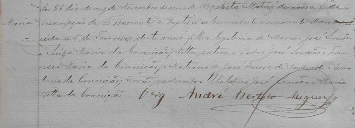- Maria, nascida no dia 05/02/1880, batizada no dia 28/11/1880, na Matriz de Nossa Senhora da Assumpção de Benevente-ES