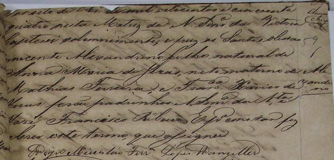 - Alexandrina, batizada no dia 08/09/1852, na matriz de Vitoria-ES