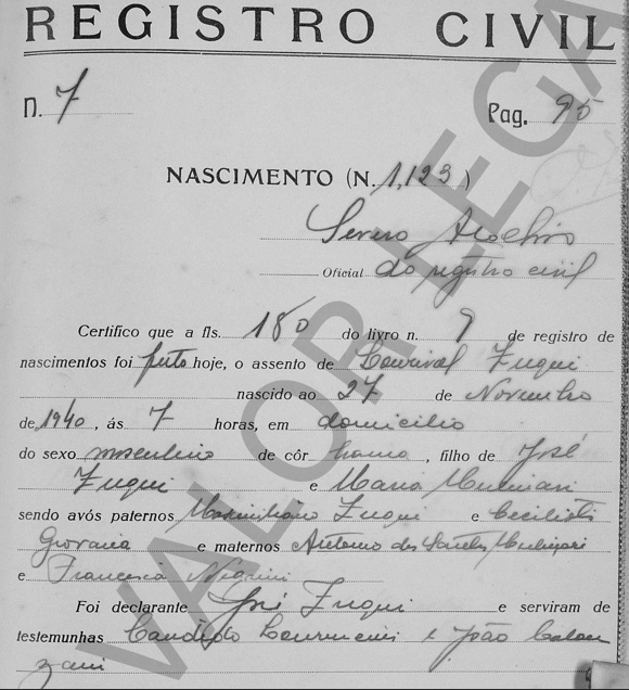 - Laurindo Zuqui (15/07/1937, às 15 horas, em Iriritiba, Anchieta-ES) c.c.