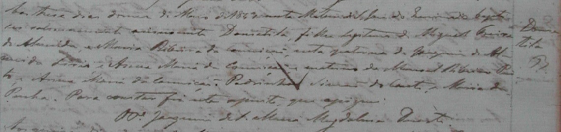 - Domitila, batizada no dia 13/05/1853, na Matriz de São Jose do Queimado-ES