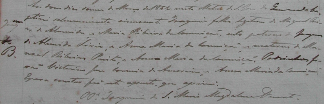 Padrinhos: Victorino Jose Correia de Amorim e Anna Maria da Conceição