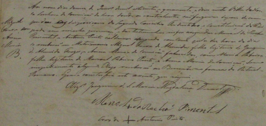 Testemunhas: Manoel da Rocha Pimentel e Antonio Pinto Caldeira