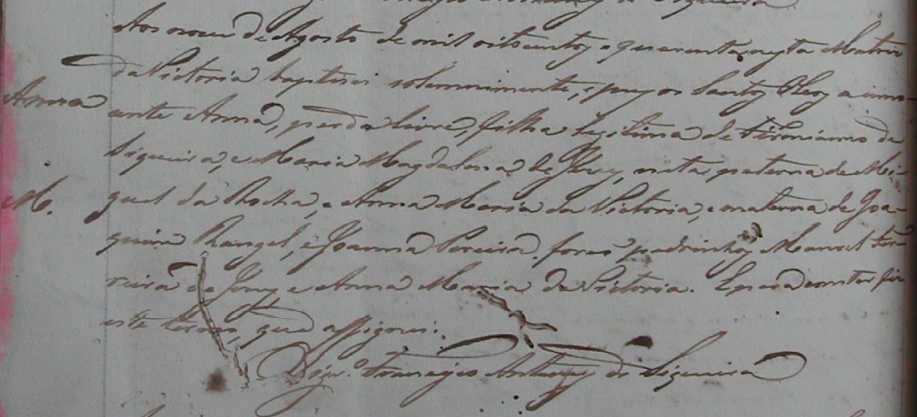 Padrinhos: João Ignacio Pereira e Victoria Francisca do Sacramento
