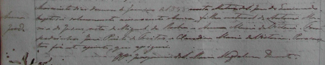 - Carolina, nascido no dia 03/10/1839, batizada no dia 14/06/1840, na Matriz de Vitoria-ES