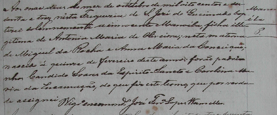 - Manoela, batizada no dia 11/10/1863, , na Freguezia de São Jose do Queimado-ES