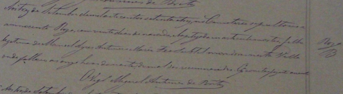 - Roza, falecida no dia 03/09/1873, na Vila da Serra-ES, com 20 dias de nascida