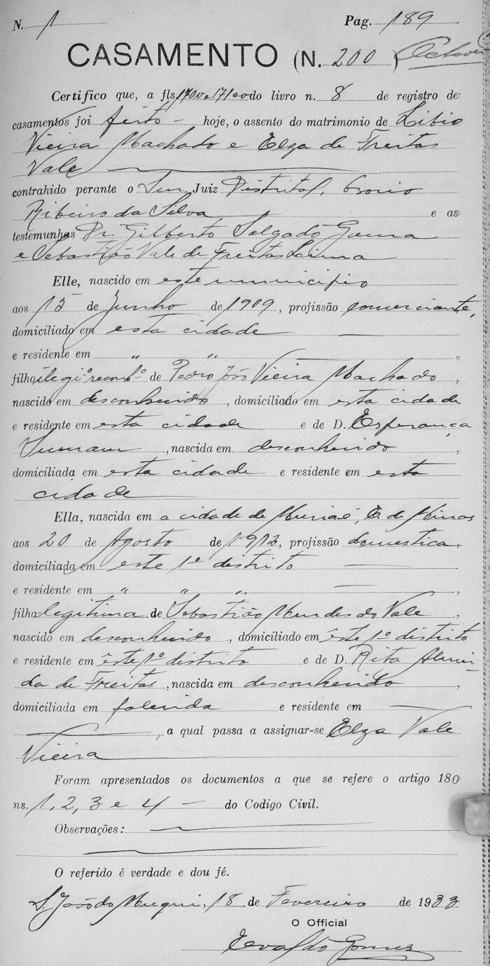 - Ataulpho Vieira de Almeida c.c. Maria da Penha Abreu Vieira, filha de Cornelio Abreu e Adorilla Reis Abreu