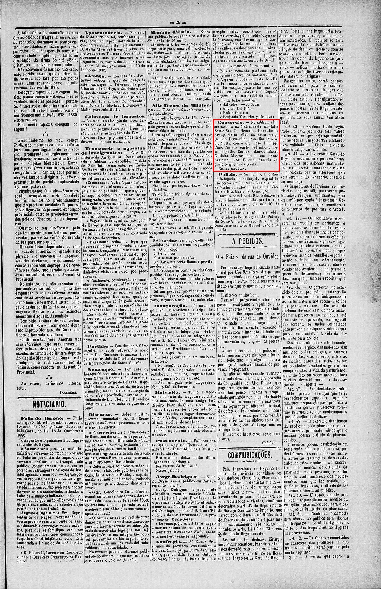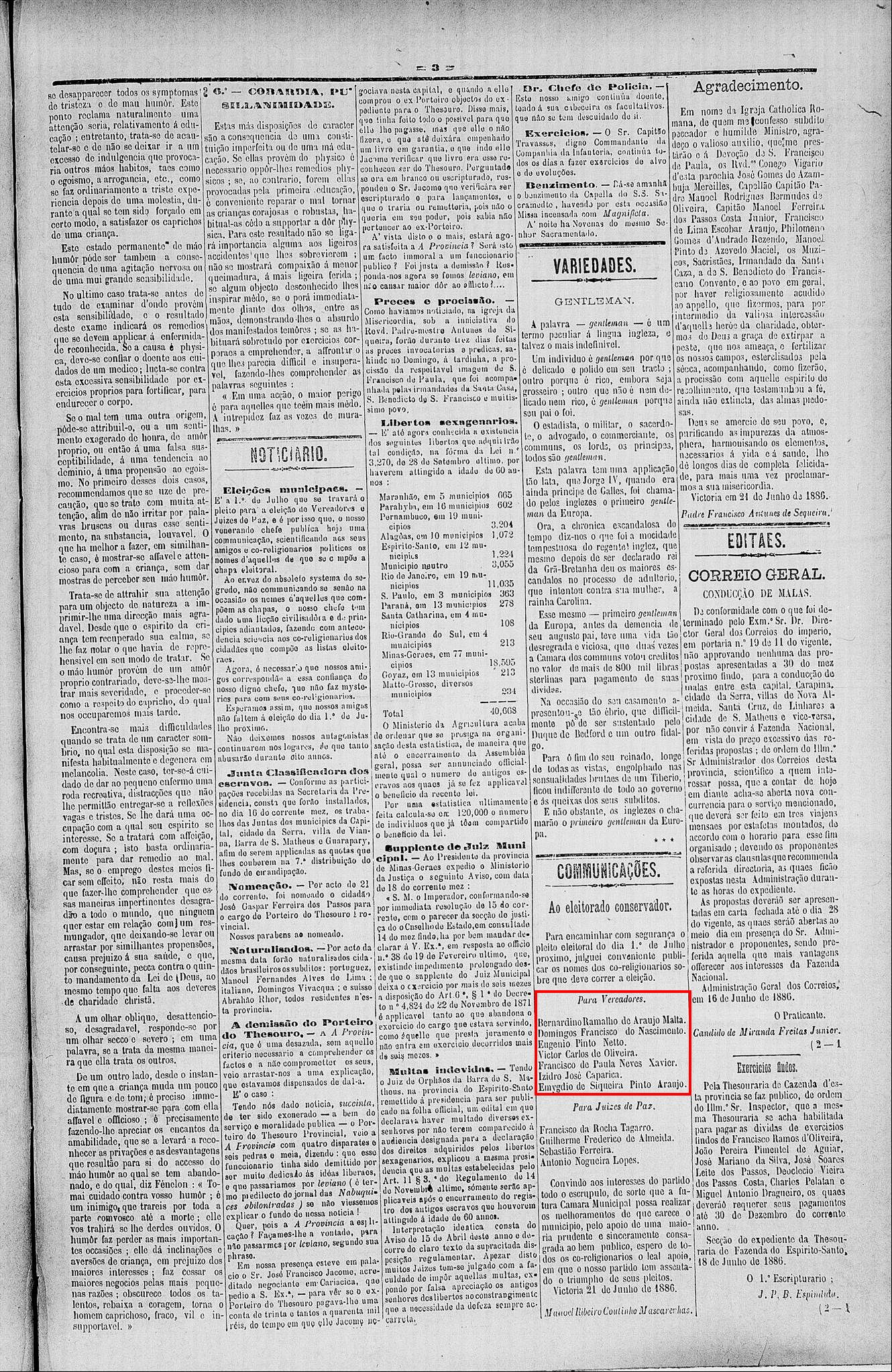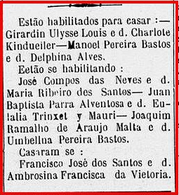 1886 - Em 20/10/1886 foi noticiado o casamente de Honorina Ramalho Araujo Malta e João Phelippe Pinto Pestana, realisado no sabado passado