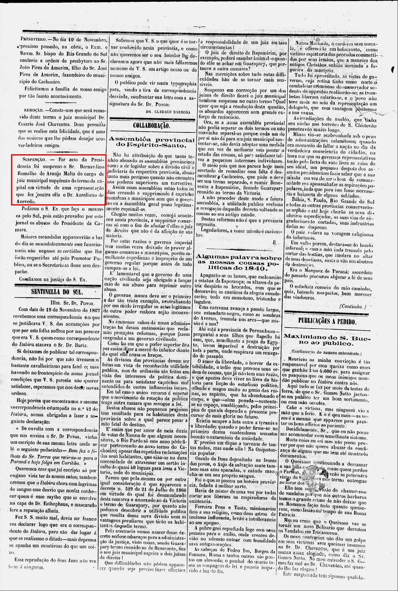 1867 - Bernardino Ramalho de Araujo Malta - Suspenso do cargo de Juiz Municipal em virtude de representação feita por Dr. Aureliano de Azevedo