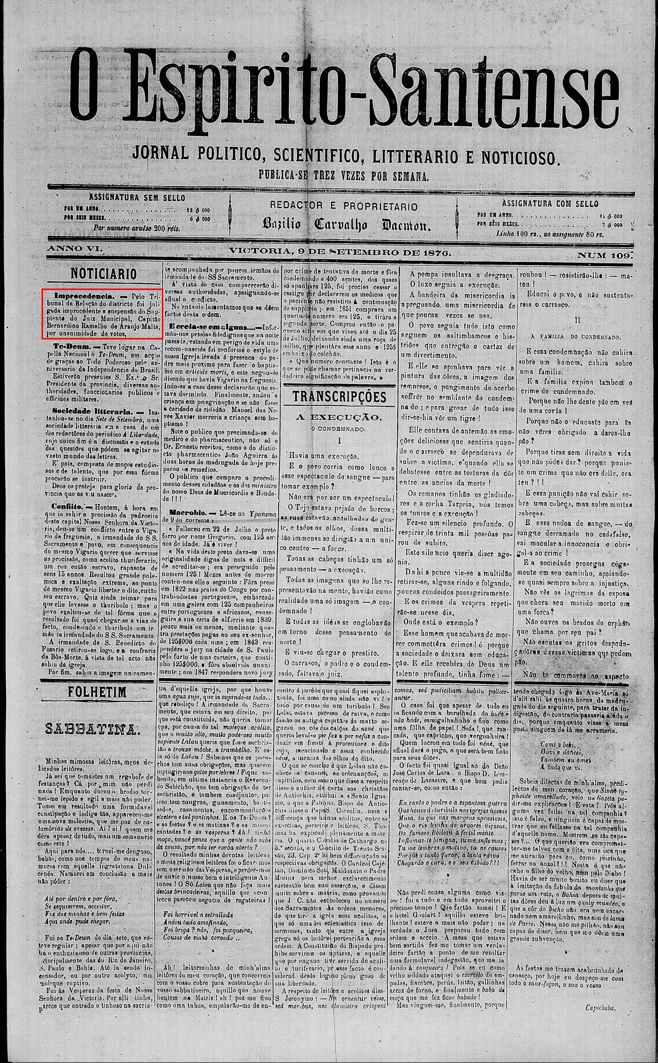- Em 1867 foi suspenso do cargo de Juiz Municipal em virtude de representação feita por Dr. Aureliano de Azevedo