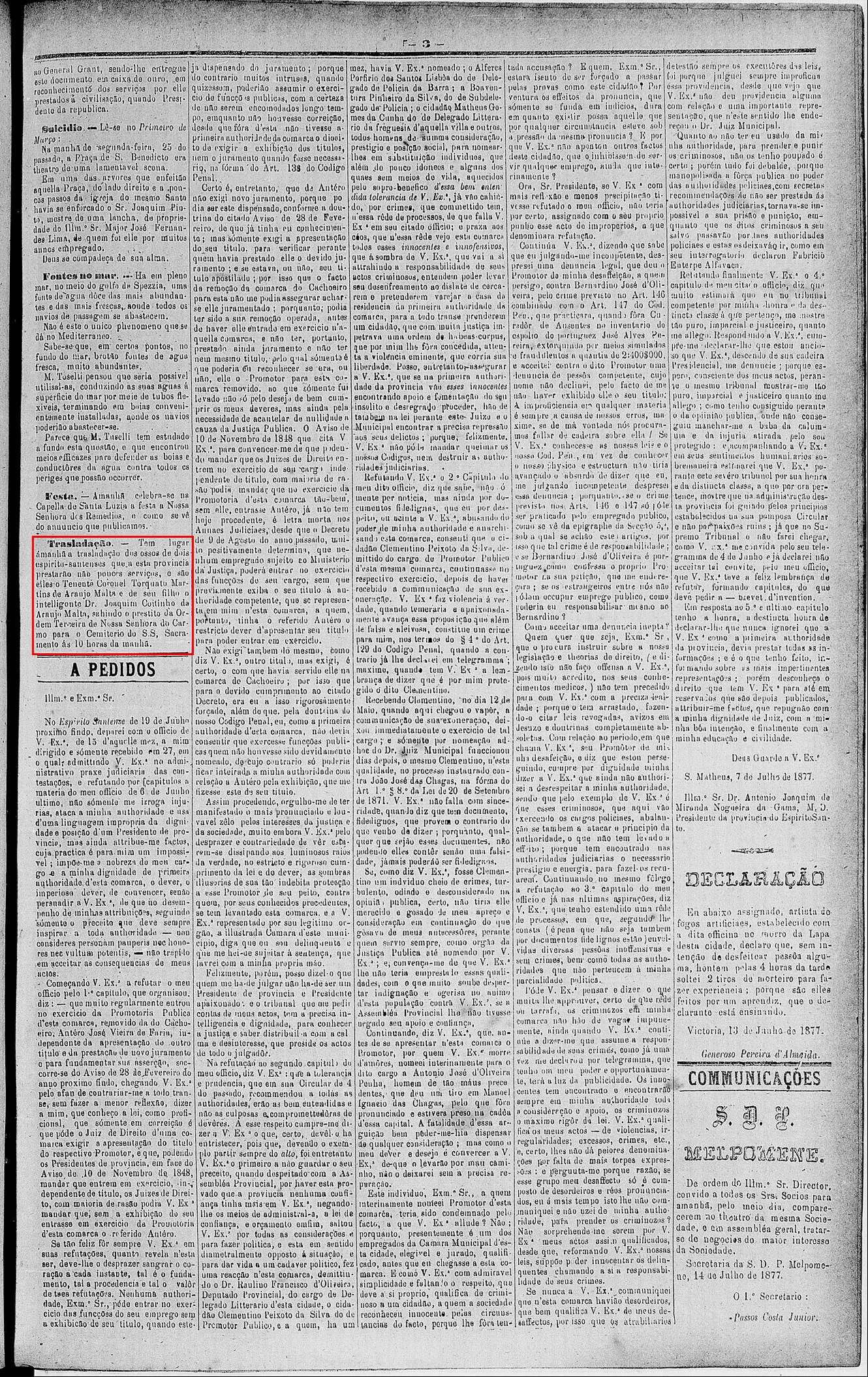 1877 - Trasladação de ossos de Torquato Martins Araujo Malta e de seu filho Joaquim Coutinho Araujo Malta