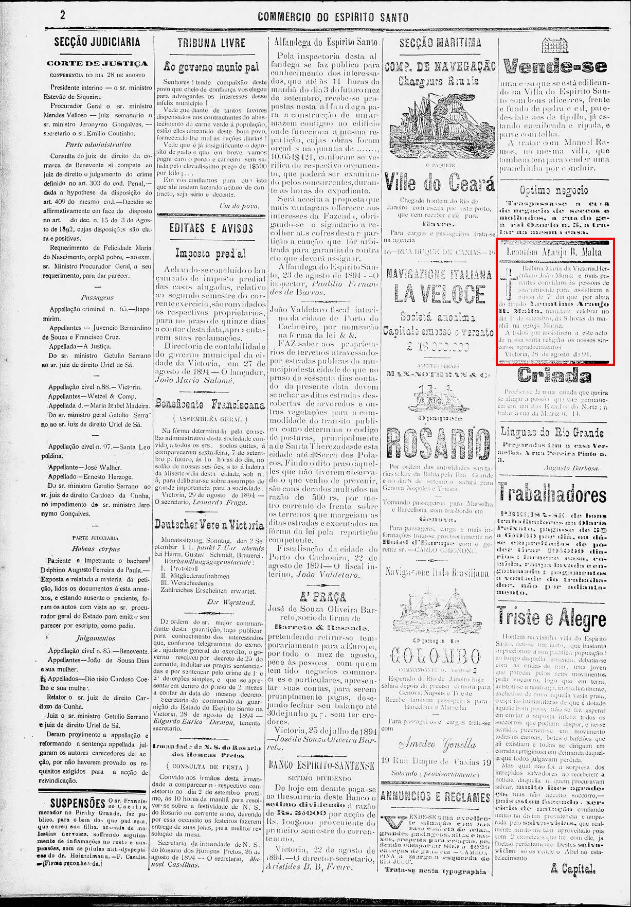 1894 - Falecimento de Leontino Ramalho Araujo Malta