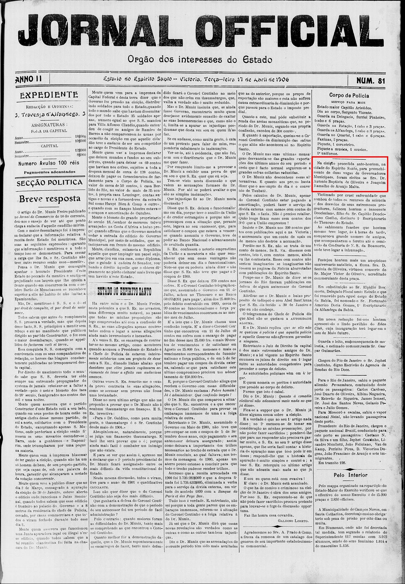 1906 - Joaquim Ramalho de Araujo Malta e Dr. Antonio Batista de Oliveira eleitos para as vagas de Governadores Municiapais