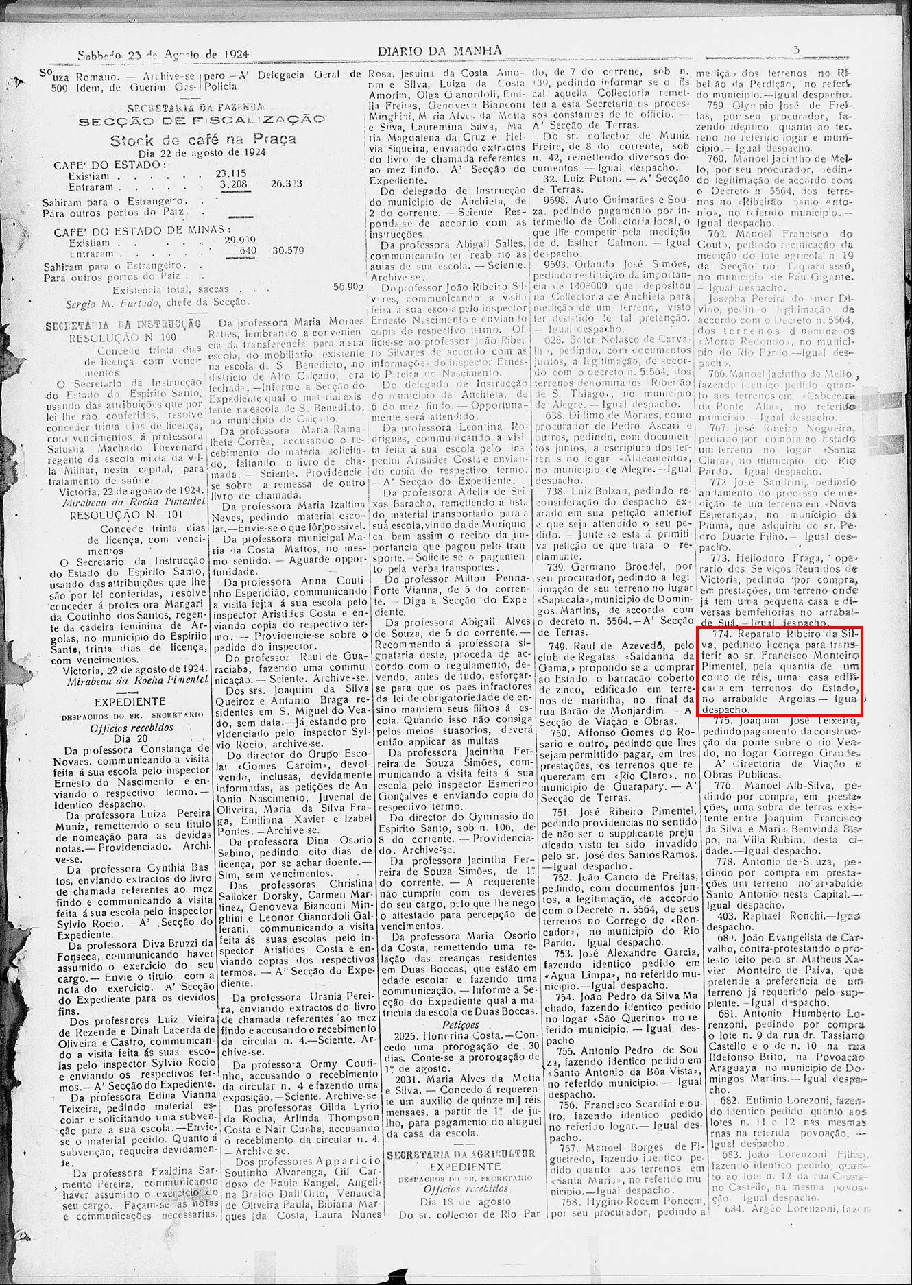 1924 - Reparato Ribeiro da Silva - Cliente da Empresa BRASILIA
