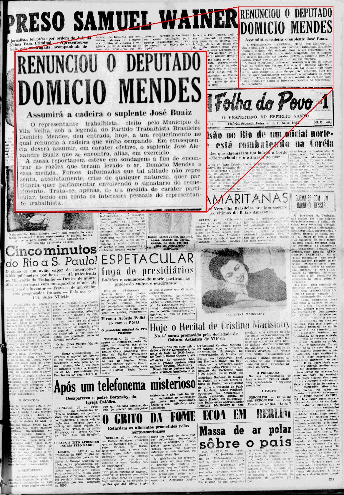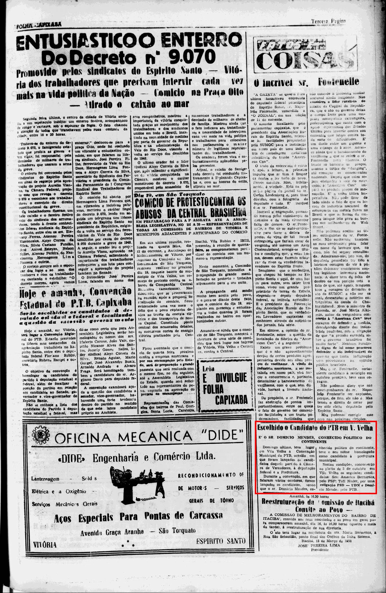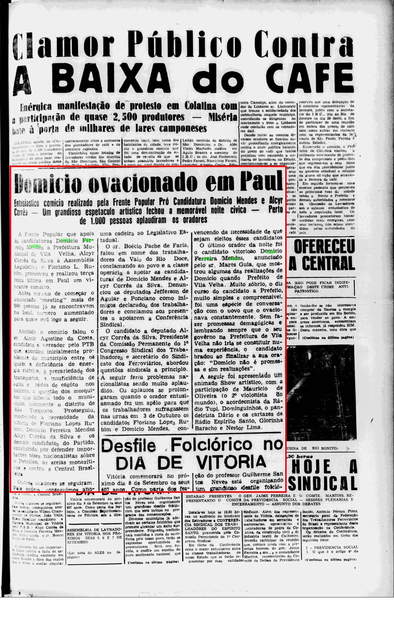 1958 - Escolhido o Candidato do PTB - Domício Mendes