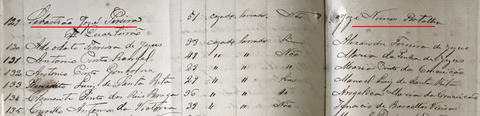 Sebastião Jose Pereira estava com 51 anos em 1878, cazado, lavrador, não sabia ler e escrever, não elegível, renda de $300.000, filho de Jose Nunes Batalha, conforme lista de eleitores de Queimados-ES, registro 129