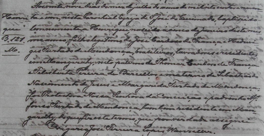 Padrinhos: Jose Furtado de Mendonça e Maria Jose Pinto de Mendonça