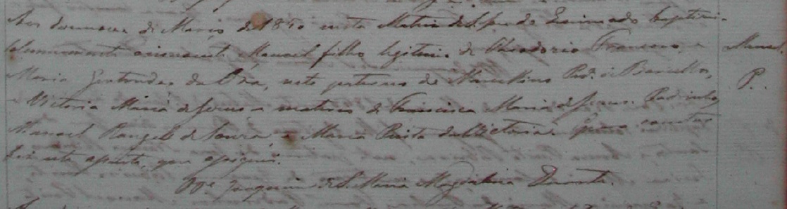 Padrinhos: Manoel Rangel de Souza e Maria Pinto da Victoria