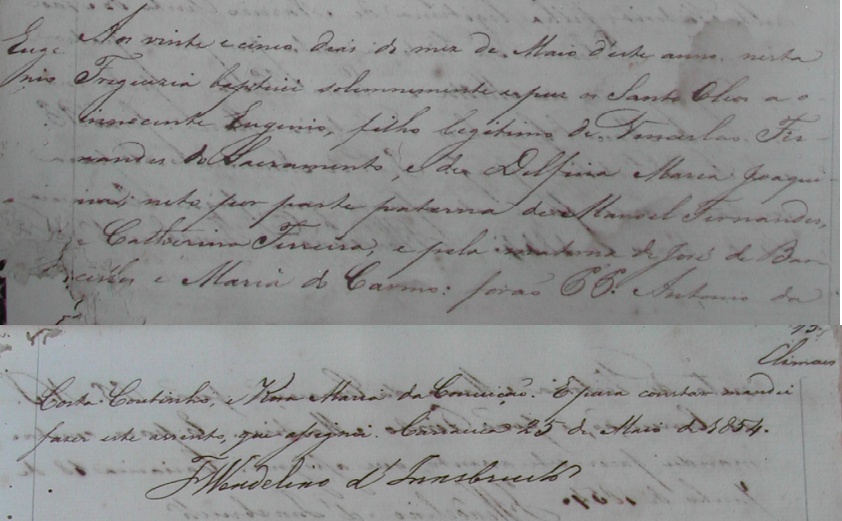 - Eugenio, batizado no dia 25/05/1854, na Freguezia de Cariacica-ES