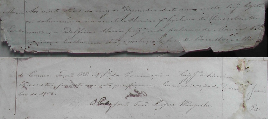 - Maria (parda), batizada no dia 20/12/1856, na Freguezia de Cariacica-ES
