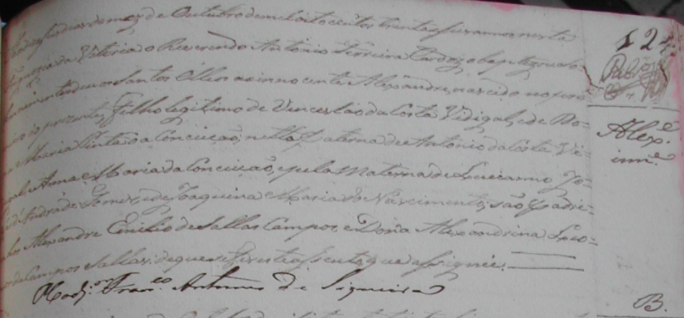 - Alexandre, batizado no dia 23/10/1836, na Matriz de Vitoria-ES