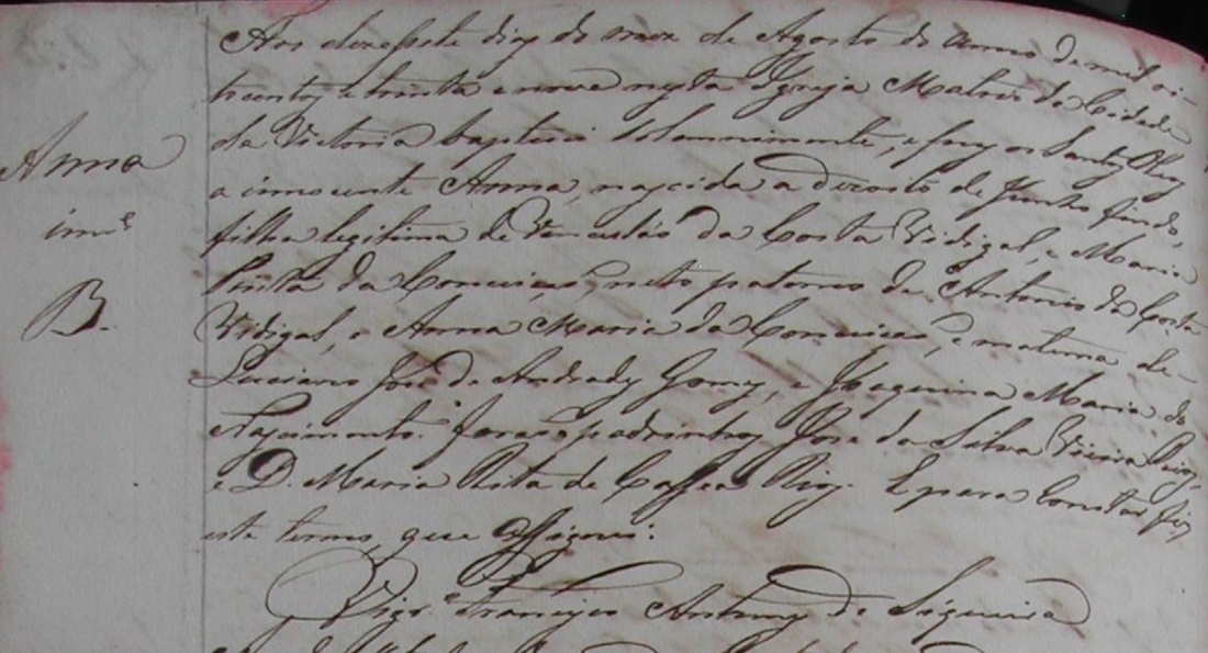 - Anna, nascida no dia 18/06/1839, batizada no dia 17/08/1839, na Matriz de Vitoria-ES