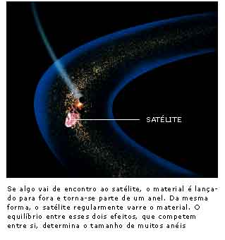 Além de seus satélites ou luas, o planeta Saturno apresenta o fenômeno especial do anel que, visto de longe, parece cercá-lo de uma como auréola branca. Esse anel é, com efeito, o resultado de uma separação que se operou no equador de Saturno, ainda nos tempos primitivos, do mesmo modo que uma zona equatorial se escapou da Terra para formar o seu satélite.A diferença consiste em que o anel de Saturno se formou, em todas as suas partes, de moléculas homogêneas, provavelmente já em certo estado de condensação, e pode, dessa maneira, continuar o seu movimento de rotação no mesmo sentido e em tempo quase igual ao do que anima o planeta. Se um dos pontos desse anel houvesse ficado mais denso do que outro, uma ou muitas aglomerações de substância se teriam subitamente operado e Saturno contaria muitos satélites a mais. Desde a época da sua formação, esse anel se solidificou, do mesmo modo que os outros corpos planetários. [38 - capítulo VI página 121 item 27 ] Allan Kardec - A Gênese -