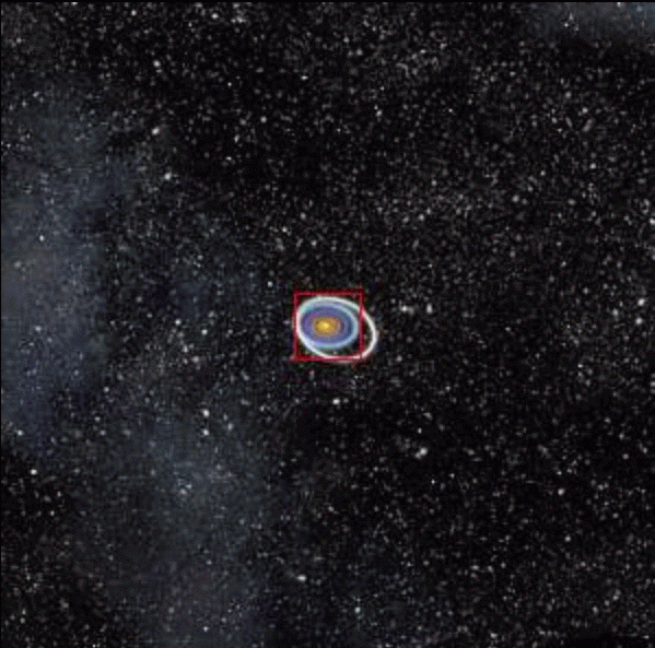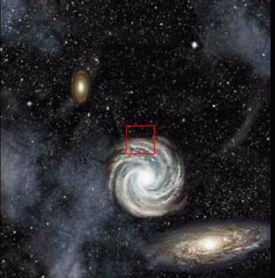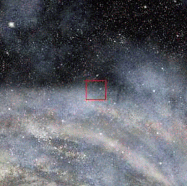 10 anos-luz (1017m) - Ainda apenas estrelas: ![]() 1 ano-luz (1016m) - O Sol aparece bem pequeno: