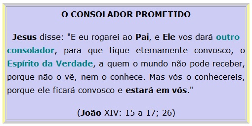 fará lembrar de tudo o que vos tenho dito". (João XIV: 15 a 17; 26)