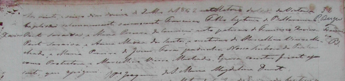 - Francisco, batizado no dia 25/07/1852, na matriz de Vitoria-ES