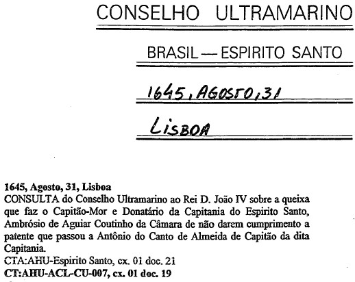 001-001-199 - Ambrozio de Aguiar Coutinho da Câmara – Capitão Mor e Goovernador - ES