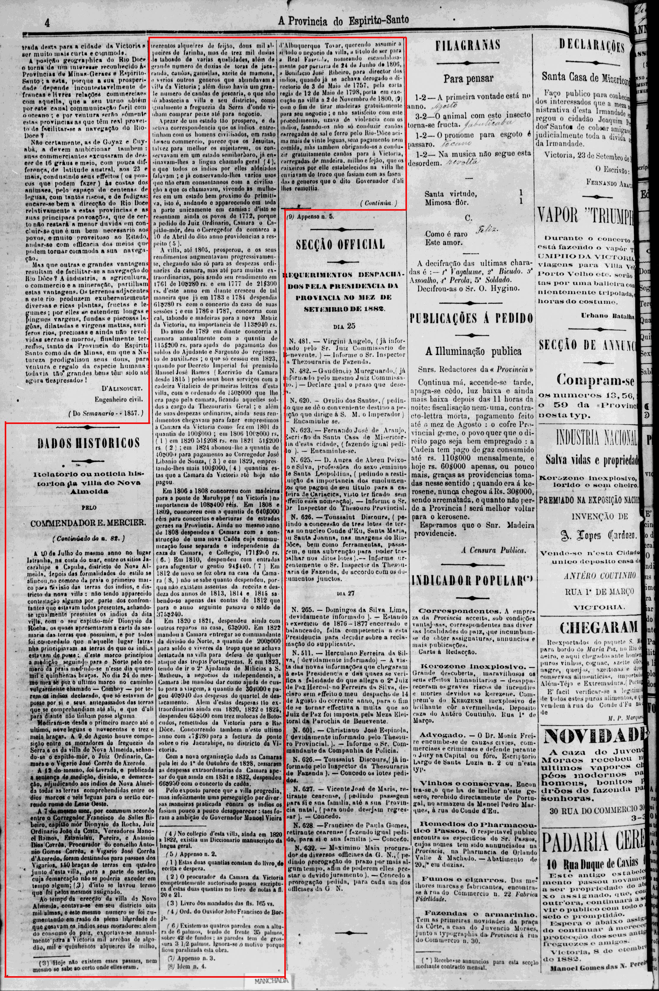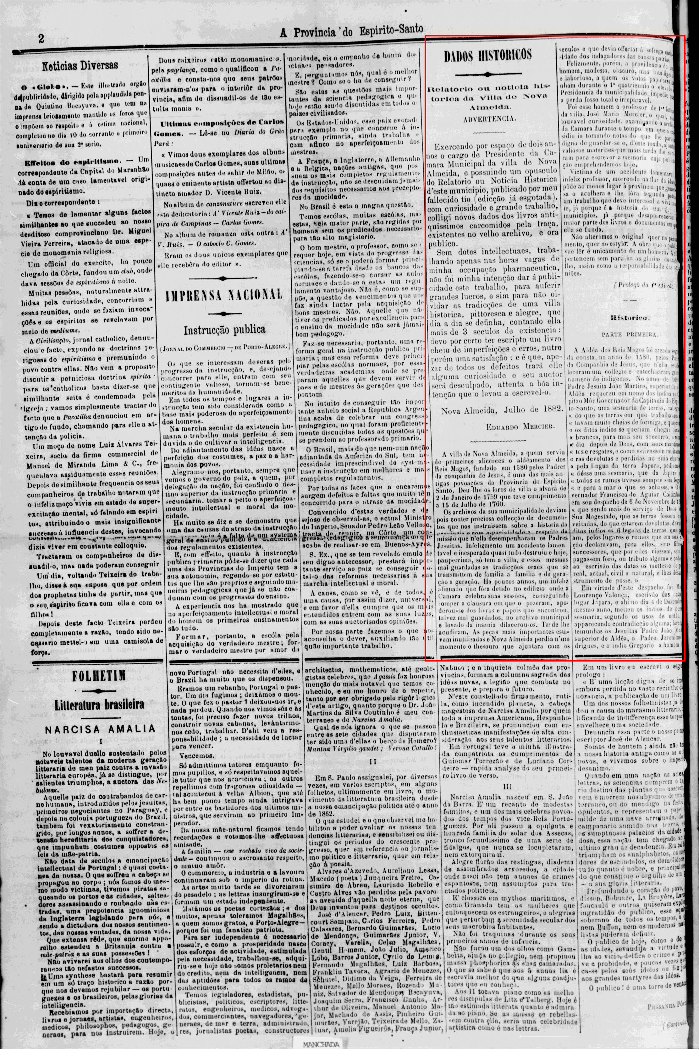 - Manoel Jose Ramos, Escrivão da câmara desde 1815, foi premiado, pelos seus bons serviços, com a cadeira Vitalícia de primeiras letras da Villa de Nova Almeida-ES