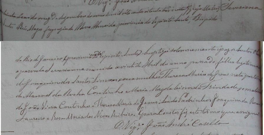 - Severiana, nascida no dia 20/04/1882, batizada no dia 30/12/1883, na Matriz de Nova Almeida-ES