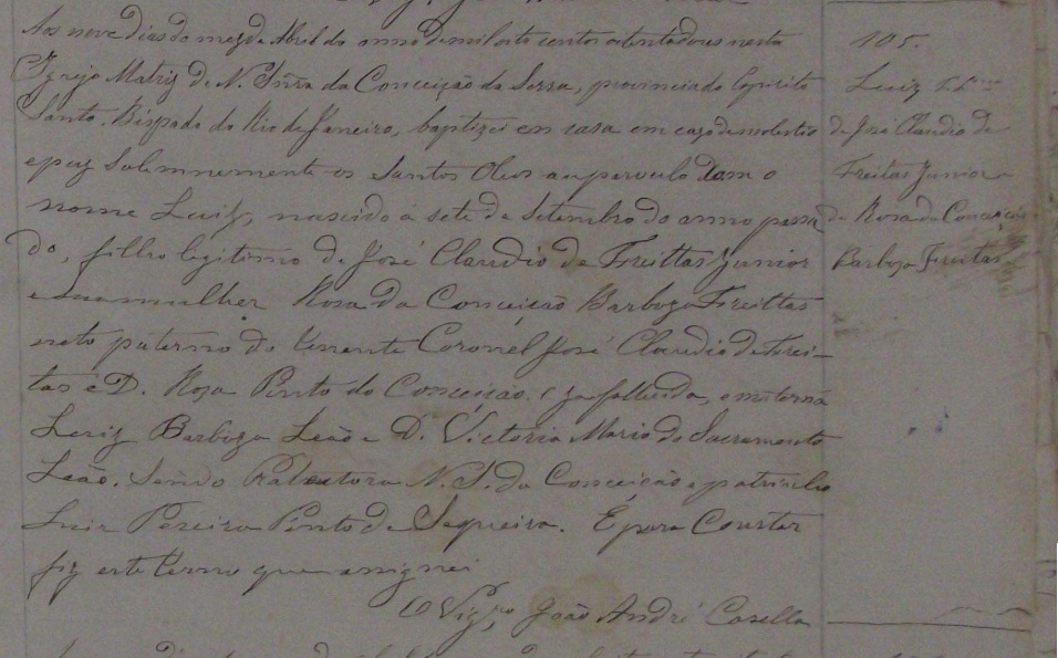 Padrinho: Luiz Pereira Pinto de Sequeira