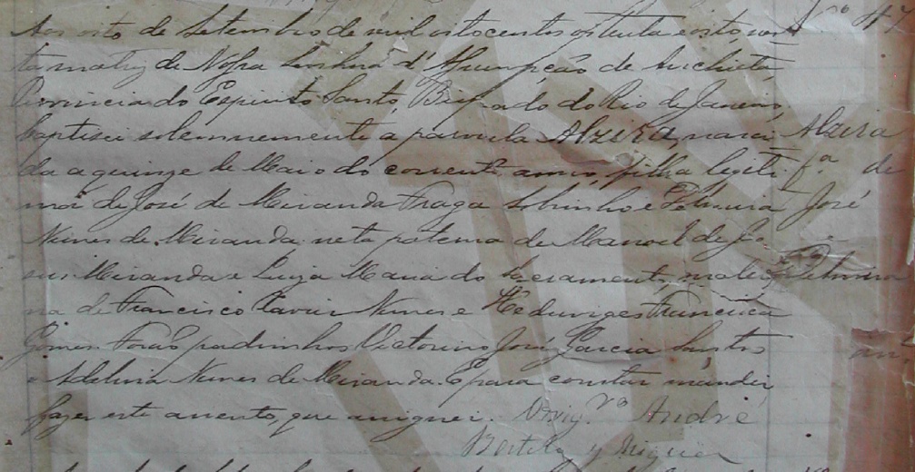 - Alicia, nascida no dia 27/11/1873, batizada no dia 08/02/1874, em Anchieta-ES