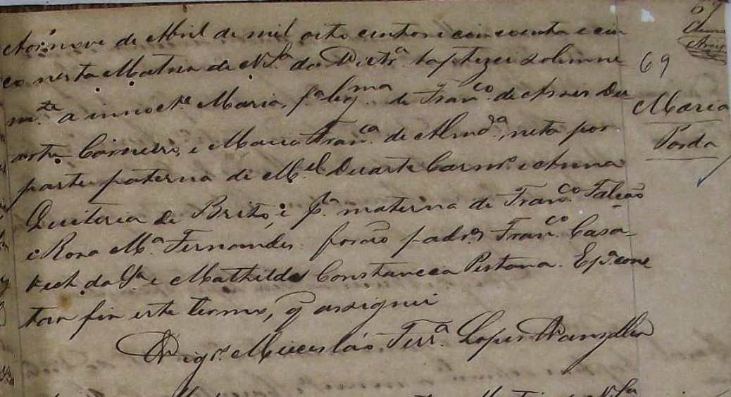 - Maria (parda), batizada no dia 09/04/1855, na Matriz de Vitoria-ES