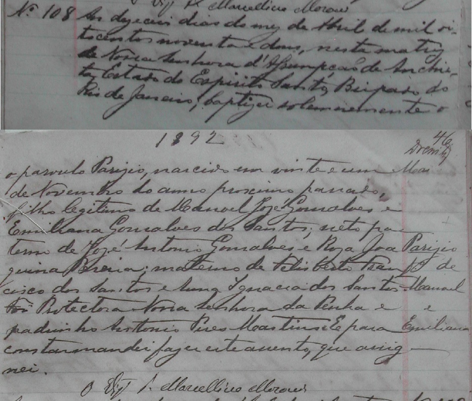 - Parizio, nascido no dia 21/11/1891, batizado no dia 16/04/1892, na Matriz de Nossa Senhora da Assumpção de Anchieta-ES